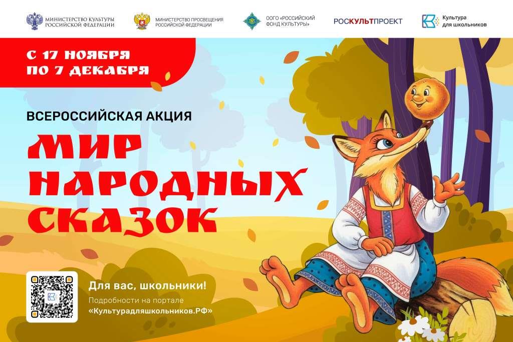 С 17 ноября 2025 по 7 декабря 2025 года проводится всероссийская акция «Мир народных сказок», организованная в рамках проекта «Культура для школьников».