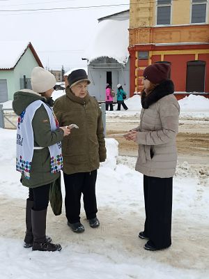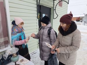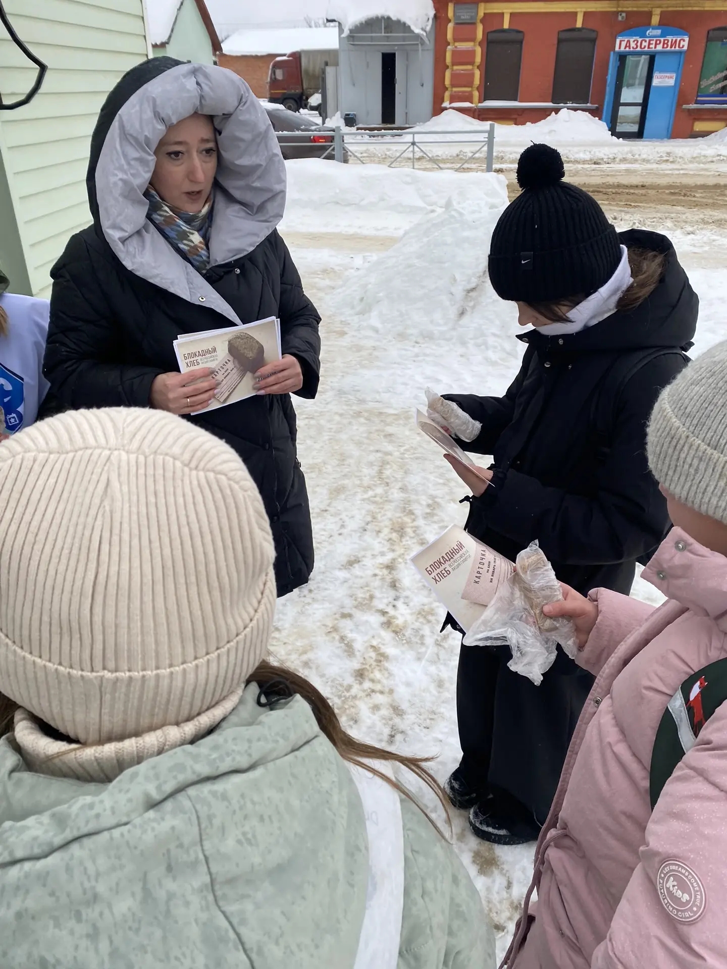 В рамках акции волонтеры раздавали починковцам памятку «Блокадный хлеб» и символический кусочек хлеба.