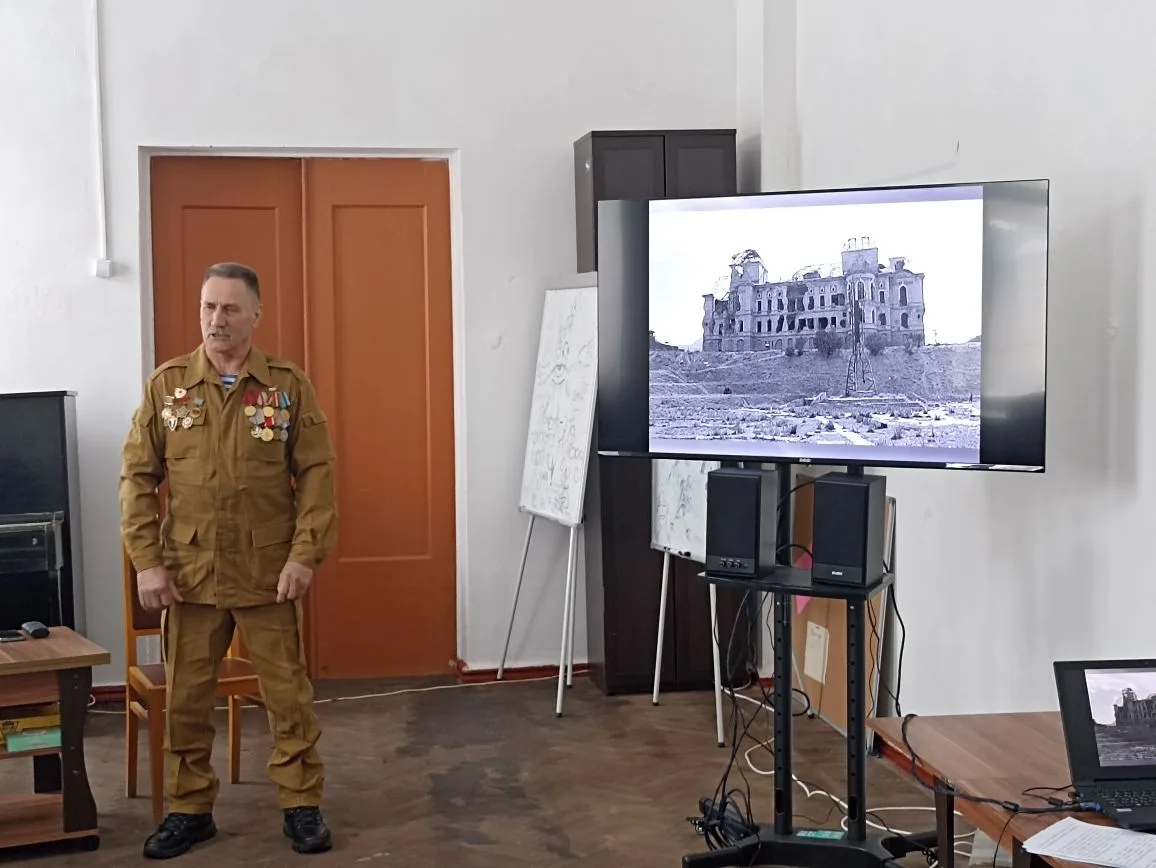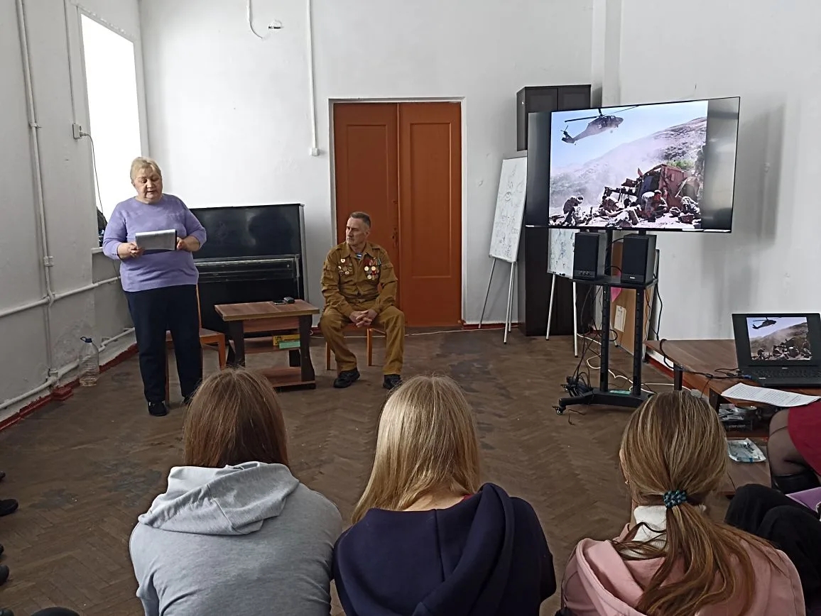 Почётным гостем встречи стал участник войны в Афганистане Владимир Кузьмич Данилов. Он поделился с ребятами воспоминаниями о годах службы — непростых, наполненных тревогами, риском и испытаниями. Владимир Кузьмич рассказал о фронтовом товариществе, о буднях солдат в сложных горных условиях, о том, что помогало сохранять силу духа и выполнять поставленные задачи. Его рассказ получился живым и искренним, вызвал живой отклик у школьников.