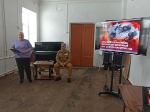 В ходе мероприятия участники познакомились с ключевыми событиями Афганской войны, узнали о причинах ввода советских войск в Афганистан в конце 1979 года, о значении этого исторического периода для нашей страны, а также о мужестве, стойкости и героизме наших солдат, принимавших участие в военных действиях.
