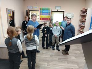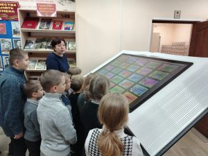 В ходе экскурсии школьники познакомились с обновленными залами модельной библиотеки, играли в развивающие игры в интерактивной панели.