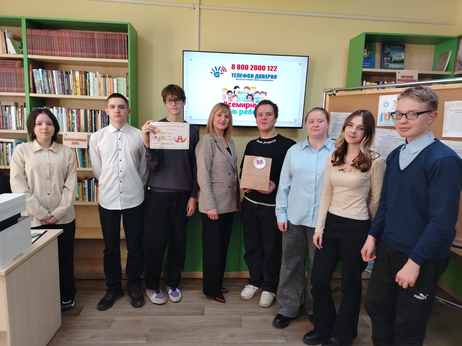 Вступительное слово заведующей Центром правовой и деловой информации познакомило ребят с ключевыми аспектами юридической грамотности: она подробно рассказала о Конвенции ООН о правах ребенка, ее  содержании и значении для каждого гражданина нашей страны. Школьники узнали, кем утверждена Конвенция, какие права в ней закреплены,  кто является уполномоченным по правам ребенка в России, а также ознакомились с основными законами, защищающими права детей.